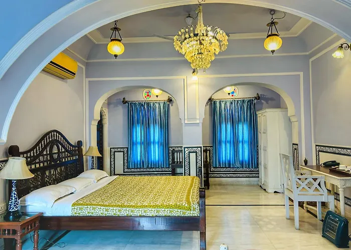Saba Haveli offers spacious guest rooms with charming decor, fitting seamlessly into its historical context. The hotel features a restaurant that serves local cuisine, providing a taste of authentic Rajasthani flavors. Guests can also enjoy the terrace and beautiful garden views, which enhance the overall experience. With a 24-hour front desk, it ensures guest assistance at all times.